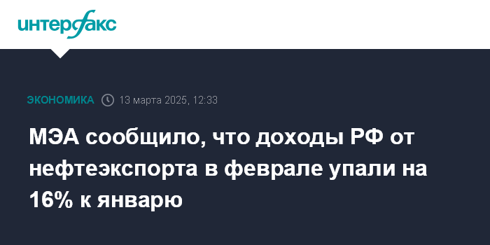 МЭА сообщило, что доходы РФ от нефтеэкспорта в феврале упали на 16% к январю