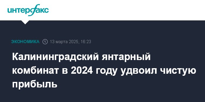 Калининградский янтарный комбинат в 2024 году удвоил чистую прибыль
