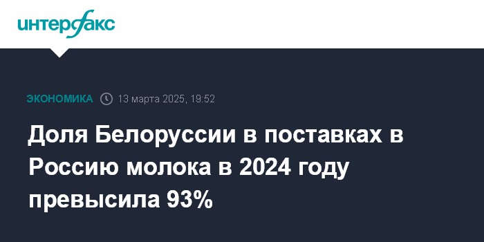 Доля Белоруссии в поставках в Россию молока в 2024 году превысила 93%