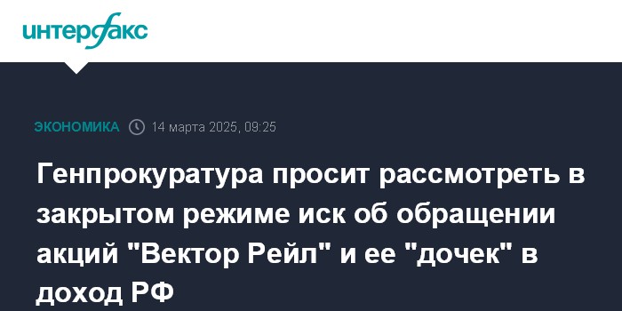 Генпрокуратура просит рассмотреть в закрытом режиме иск об обращении акций "Вектор Рейл" и ее "дочек" в доход РФ