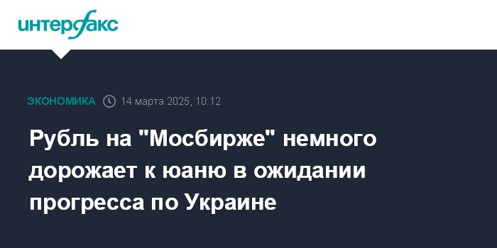 Москва. 14 марта. INTERFAX.RU - Утром на "Московской бирже" рубль дорожает к юаню в ожидании значимого прогресса в урегулировании российско-украинского конфликта.