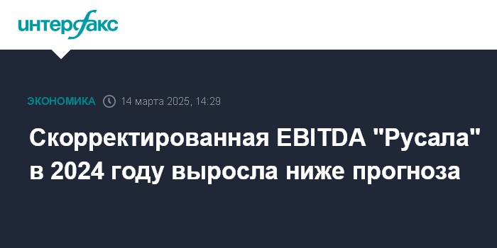 Москва. 14 марта. INTERFAX.RU - Скорректированная EBITDA "Русала" в 2024 году выросла на 90% к данным годичной давности, до $1,494 млрд, сообщила компания.