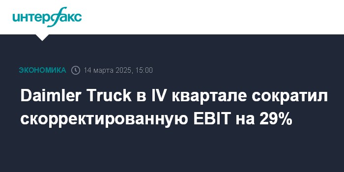 Москва. 14 марта. INTERFAX.RU - Германский производитель грузовиков Daimler Truck Holding AG сократил скорректированную EBIT на 29% в четвертом квартале и на 15% в 2024 году, но ожидает роста показателя в 2025г.
