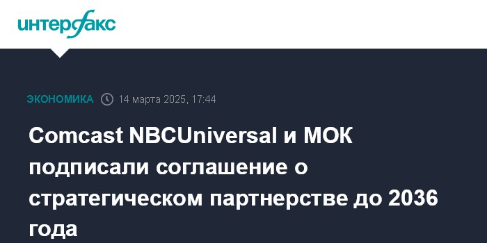 Москва. 14 марта. INTERFAX.RU - Американская Comcast NBCUniversal (NBCU) и Международный олимпийский комитет подписали новое соглашение о партнерстве и правах на показ Олимпийских игр, которое будет действовать до 2036 года, сообщил МОК.