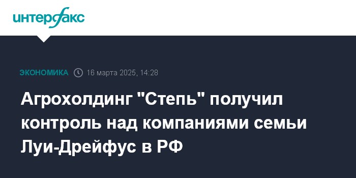 Агрохолдинг "Степь" получил контроль над компаниями семьи Луи-Дрейфус в РФ