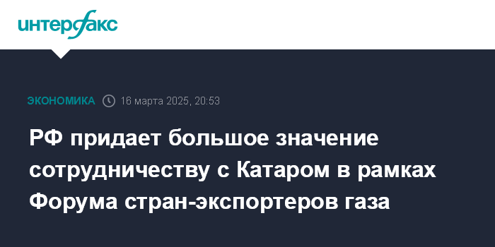 РФ придает большое значение сотрудничеству с Катаром в рамках Форума стран-экспортеров газа