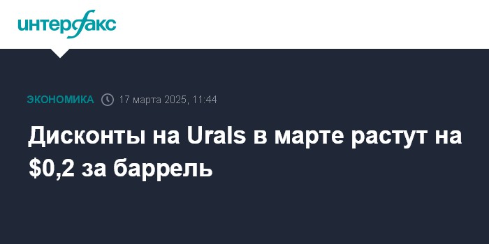 Дисконты на Urals в марте растут на $0,2 за баррель