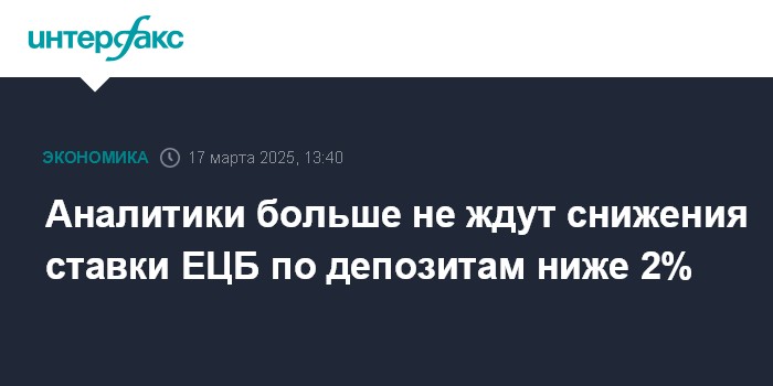 Аналитики больше не ждут снижения ставки ЕЦБ по депозитам ниже 2%