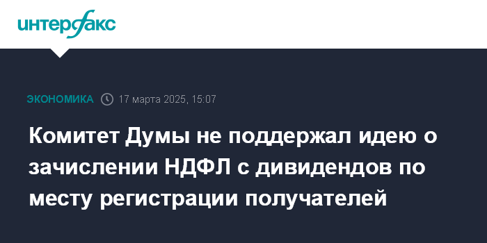 Комитет Думы не поддержал идею о зачислении НДФЛ с дивидендов по месту регистрации получателей