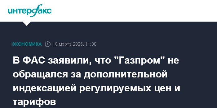 В ФАС заявили, что "Газпром" не обращался за дополнительной индексацией регулируемых цен и тарифов