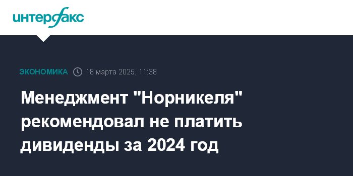 Москва. 18 марта. INTERFAX.RU - Менеджмент "Норильского никеля" рекомендует не распределять дивиденды за 2024 год, заявил журналистам глава компании Владимир Потанин.