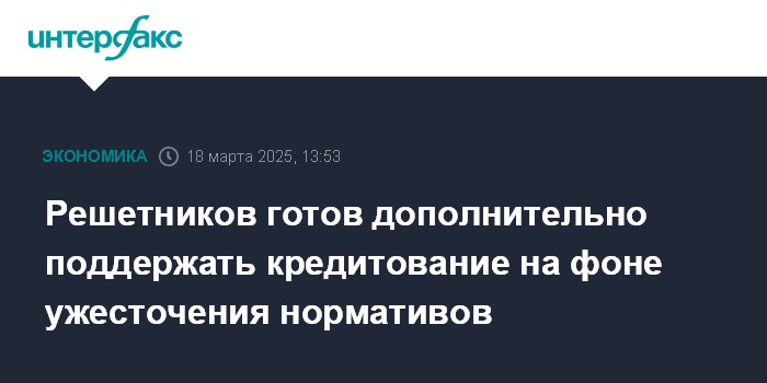 Решетников готов дополнительно поддержать кредитование на фоне ужесточения нормативов