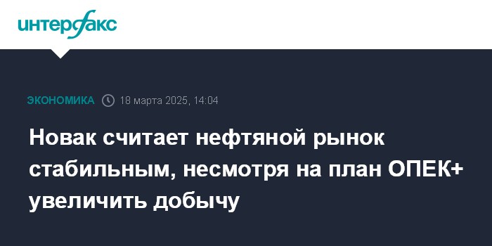 Новак считает нефтяной рынок стабильным, несмотря на план ОПЕК+ увеличить добычу