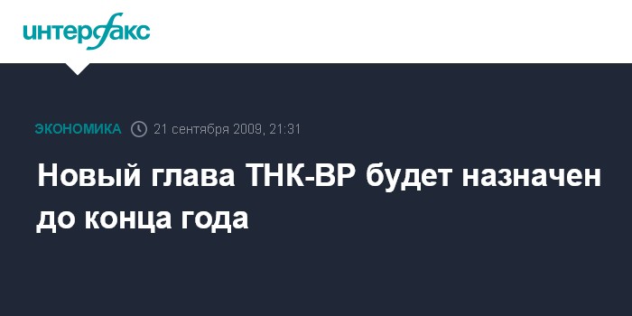 Берн. 21 сентября. INTERFAX.RU - Новый глава ТНК-BP будет назначен до конца этого года, сообщил совладелец компании Виктор Вексельберг, отвечая на вопрос "Интерфакса".