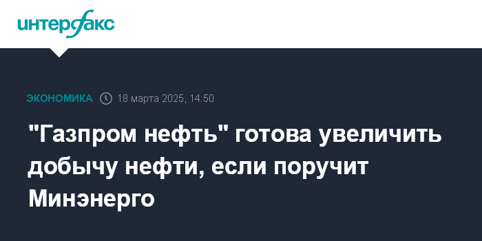 "Газпром нефть" готова увеличить добычу нефти, если поручит Минэнерго