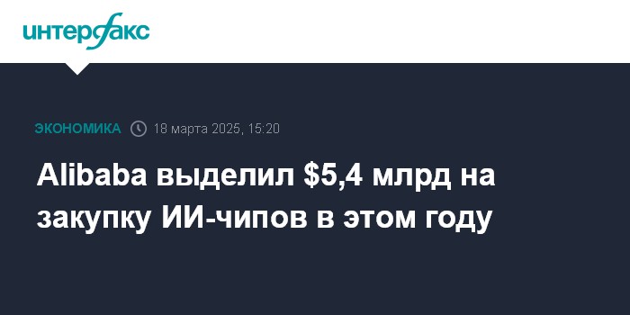 Москва. 18 марта. INTERFAX.RU - Китайский интернет-гигант Alibaba заложил в бюджет на этот год 39 млрд юаней ($5,39 млрд) на покупку ИИ-чипов, пишет Financial Times со ссылкой на информированный источник.