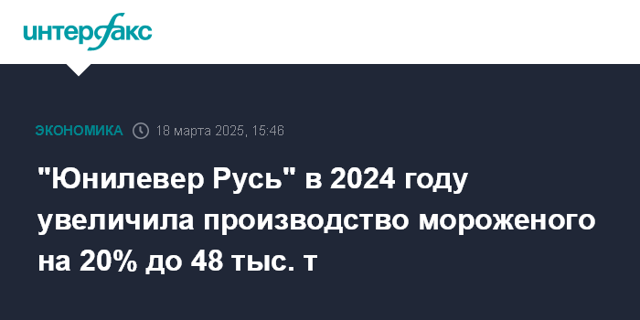 "Юнилевер Русь" в 2024 году увеличила производство мороженого на 20% до 48 тыс. т
