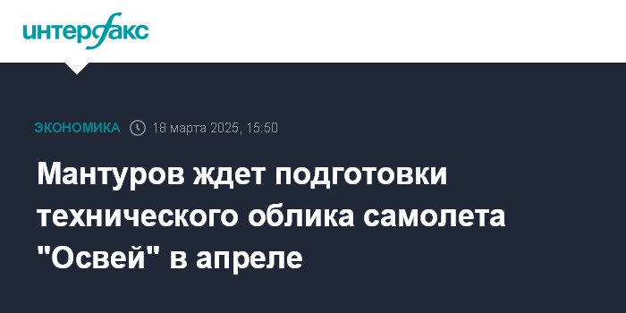 Мантуров ждет подготовки технического облика самолета "Освей" в апреле