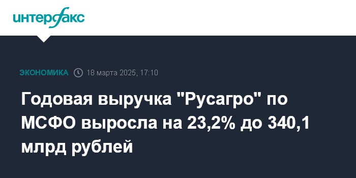 Годовая выручка "Русагро" по МСФО выросла на 23,2% до 340,1 млрд рублей