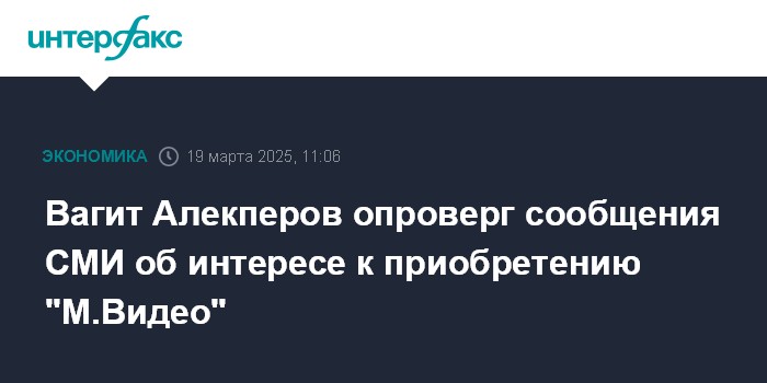 Москва. 19 марта. INTERFAX.RU - Основатель "ЛУКОЙЛа" Вагит Алекперов опроверг сообщения в СМИ об интересе к приобретению бизнеса ритейлера "М.Видео".