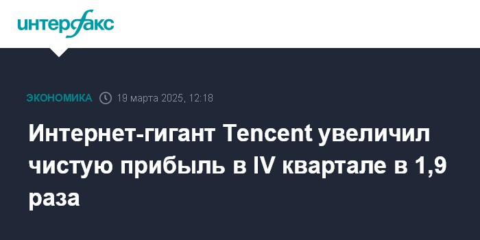 Москва. 19 марта. INTERFAX.RU - Китайский интернет-гигант Tencent Holdings Ltd. увеличил чистую прибыль в четвертом квартале 2024 года в 1,9 раза, выручку - на 11%, причем оба показателя превзошли прогнозы рынка.