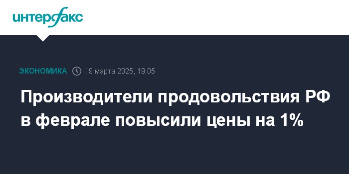 Производители продовольствия РФ в феврале повысили цены на 1%