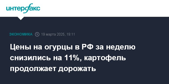 Цены на огурцы в РФ за неделю снизились на 11%, картофель продолжает дорожать