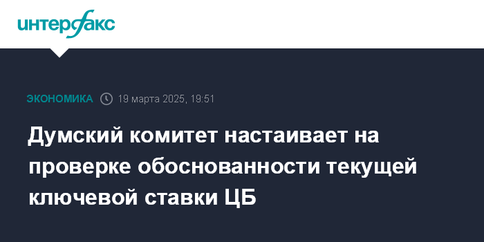 Думский комитет настаивает на проверке обоснованности текущей ключевой ставки ЦБ