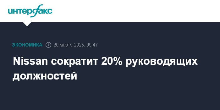 Москва. 20 марта. INTERFAX.RU - Японская Nissan Motor сократит 20% должностей в рамках продолжающейся реорганизации руководящего состава.