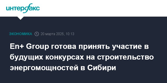 En+ Group готова принять участие в будущих конкурсах на строительство энергомощностей в Сибири