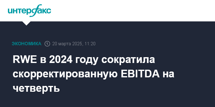 Москва. 20 марта. INTERFAX.RU - Германская энергетическая RWE AG в 2024 году резко сократила скорректированную прибыль и EBITDA, а также спрогнозировала дальнейшее снижение этих показателей.