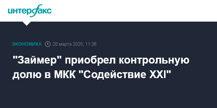 "Займер" приобрел контрольную долю в МКК "Содействие XXI"