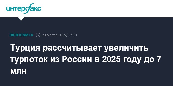 Москва. 20 марта. INTERFAX.RU - Власти Турции рассчитывают на рост турпотока из России до 7 млн в 2025 году, это будет означать полное восстановление рынка до уровня допандемийного 2019 года, сообщил журналистам посол Турции в Москве Танжу Бильгич.