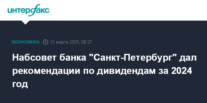 Набсовет банка "Санкт-Петербург" дал рекомендации по дивидендам за 2024 год