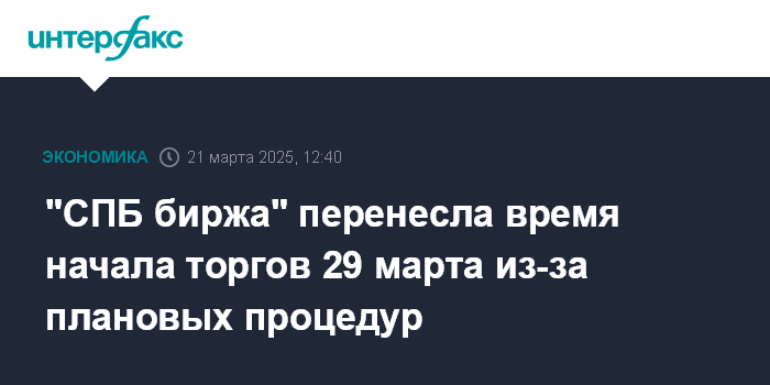 "СПБ биржа" перенесла время начала торгов 29 марта из-за плановых процедур