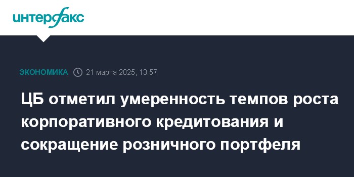 Москва. 21 марта. INTERFAX.RU - Текущие темпы роста корпоративного кредитования в целом умеренные, говорится в пресс-релизе ЦБ РФ по итогам совета директоров по ставке.
