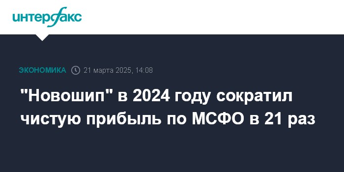 "Новошип" в 2024 году сократил чистую прибыль по МСФО в 21 раз