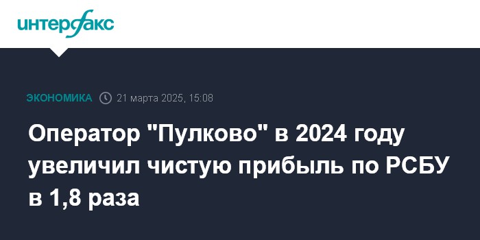 Оператор "Пулково" в 2024 году увеличил чистую прибыль по РСБУ в 1,8 раза