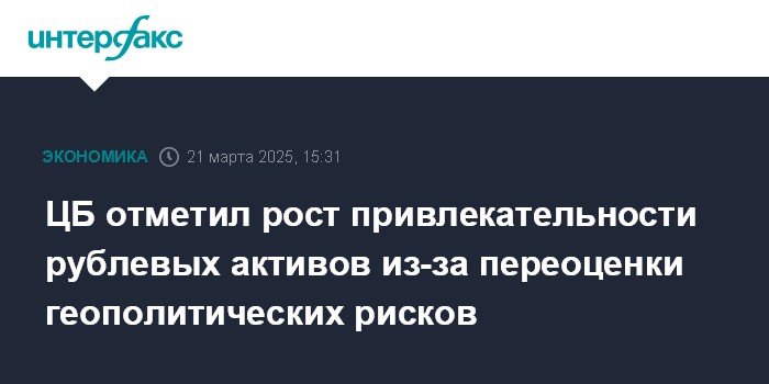 ЦБ отметил рост привлекательности рублевых активов из-за переоценки геополитических рисков