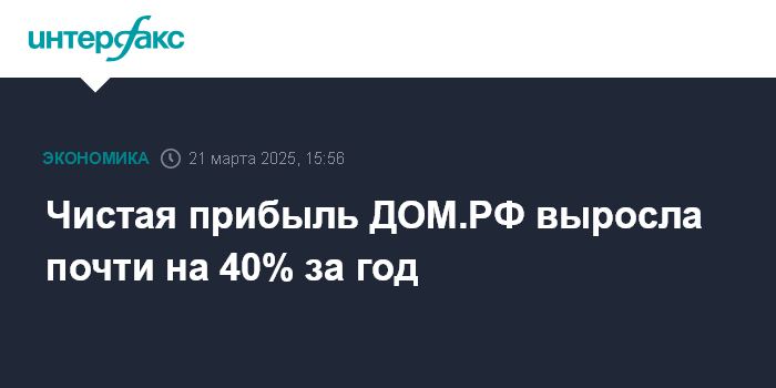Чистая прибыль ДОМ.РФ выросла почти на 40% за год
