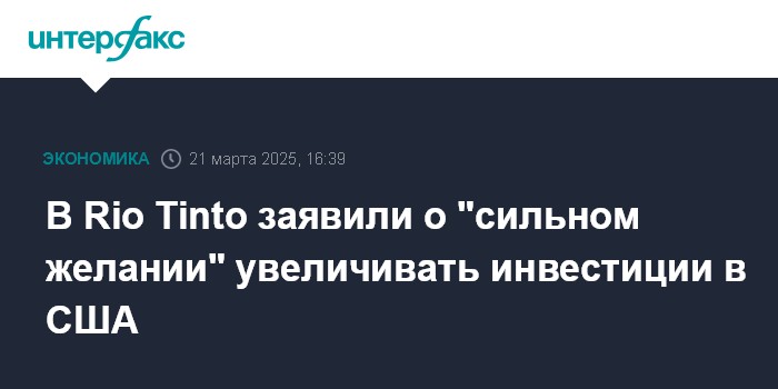 В Rio Tinto заявили о "сильном желании" увеличивать инвестиции в США