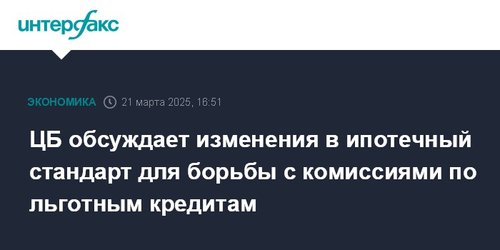 ЦБ обсуждает изменения в ипотечный стандарт для борьбы с комиссиями по льготным кредитам