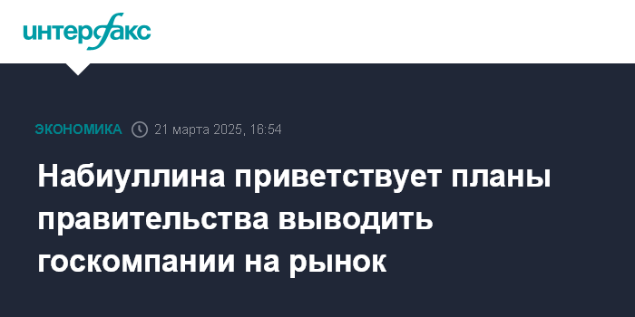 Москва. 21 марта. INTERFAX.RU - Банк России приветствует планы правительства выводить на рынок акционерного капитала государственные компании, он нуждается в крупных эмитентах, которые бы придали импульс его развитию, заявила председатель ЦБ Эльвира Набиуллина.