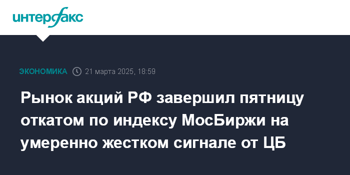 Рынок акций РФ завершил пятницу откатом по индексу МосБиржи на умеренно жестком сигнале от ЦБ