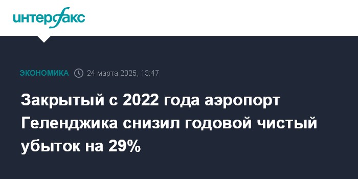 Закрытый с 2022 года аэропорт Геленджика снизил годовой чистый убыток на 29%