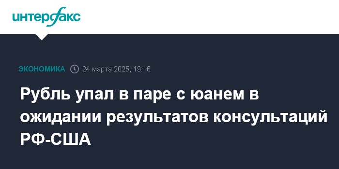 Москва. 24 марта. INTERFAX.RU - Китайский юань вырос на Московской бирже по итогам торгов в понедельник, рубль подешевел в ожидании новостей относительно урегулирования российско-украинского конфликта. В понедельник в Эр-Рияде проходят российско-американские консультации по нормализации ситуации на Черном море, и участники рынка значительную часть дня находились в неопределенности относительно промежуточных результатов этих переговоров. Курс китайской валюты в 19:00 составил 11,6105 руб., что на 14,45 коп. выше уровня закрытия предыдущих торгов.