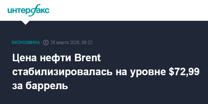 Цена нефти Brent стабилизировалась на уровне $72,99 за баррель