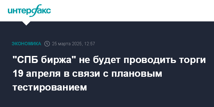 "СПБ биржа" не будет проводить торги 19 апреля в связи с плановым тестированием