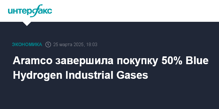 Москва. 25 марта. INTERFAX.RU - Саудовская нефтяная госкомпания Saudi Aramco завершила покупку 50%-ной доли Blue Hydrogen Industrial Gases (BHIG), которая являлась "дочкой" Air Products Qudra (APQ).