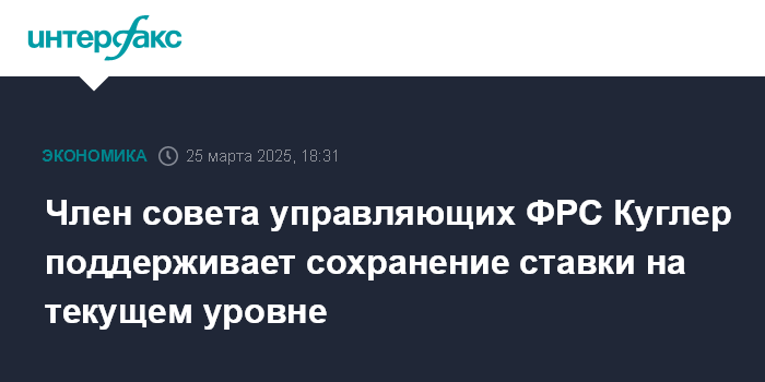 Москва. 25 марта. INTERFAX.RU - Член совета управляющих Федеральной резервной системы США Адриана Куглер поддерживает сохранение ключевой процентной ставки на текущем уровне в течение некоторого времени ввиду повышенной неопределенности в экономике и роста инфляционных ожиданий.